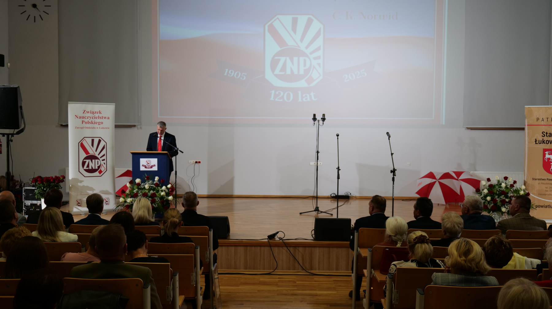Myśl C. K. Norwida o znaczeniu przeszłości dla kształtowania przyszłości „… aby mierzyć drogę przyszłą, trzeba wiedzieć, skąd się wyszło…” towarzyszyła uczestnikom Gali Jubileuszowej z okazji 120-lecia Związku Nauczycielstwa Polskiego, która odbyła się 3 października 2025 roku w auli I Liceum Ogólnokształcącego w Łukowie.