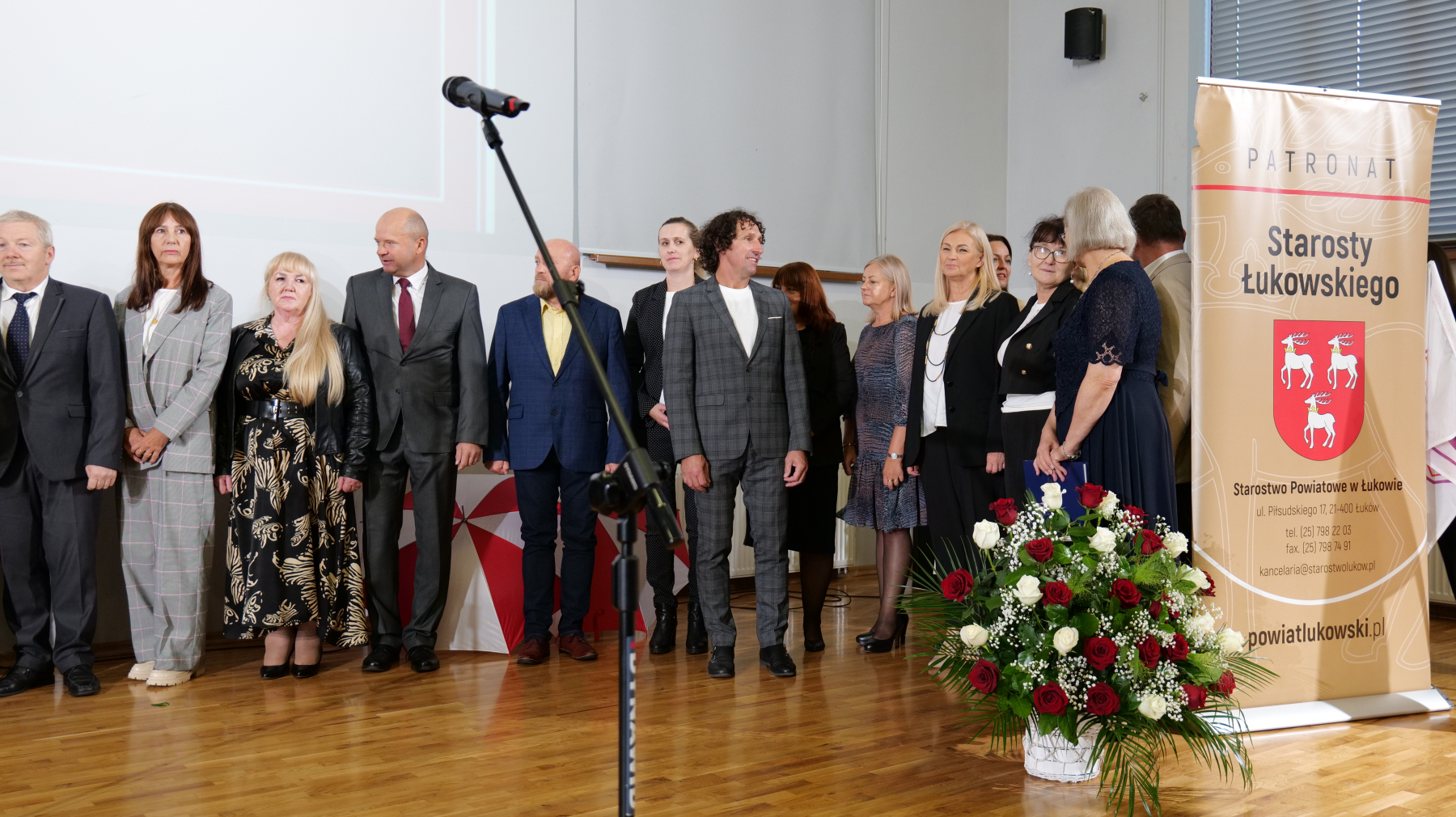 Gospodarzami uroczystości byli: Pan Adam Sosnowski – Prezes Oddziału ZNP w Łukowie, Pan Waldemar Szczęśniak – Prezes Oddziału ZNP w Gminie Łuków oraz Pani Zofia Mućka – Prezeska Oddziału ZNP w Gminie Krzywda.